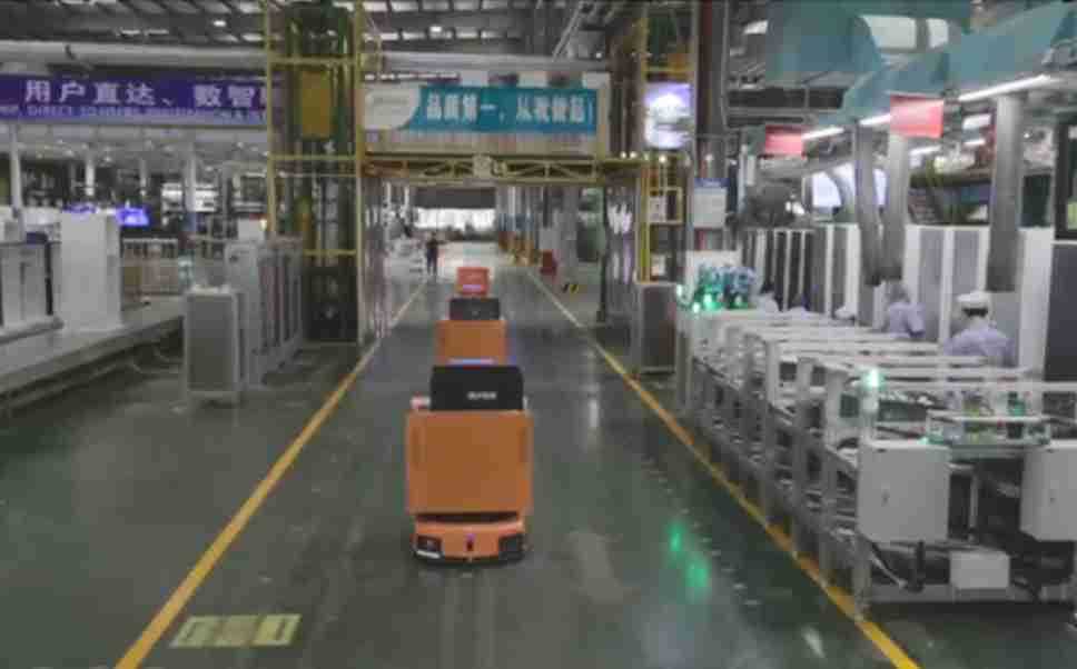 为车载冰箱物流配送打造的智能解决方案,,,,包含产中物流通过潜伏举升AMR搬运至线边,,,产后成品物流智能仓储,,,流程包含产中物流智能齐套入库,,,线边安灯叫料AMR智能配送至线边,,成品入库、、出库,,,,通过无人堆高车机器人,,,智能仓储管理替代人工作业管理,,实现更高存储、、更高效率、、更具柔性化的解决方案。。